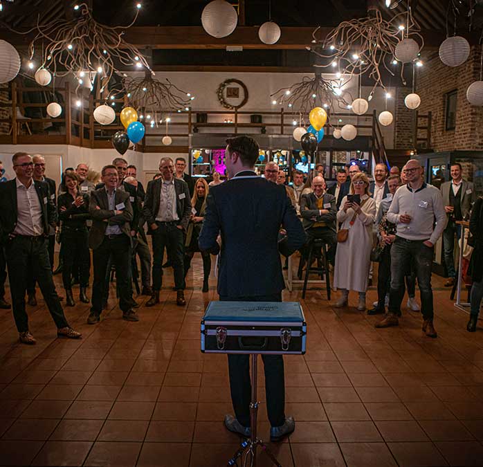 Mit seinem Koffer voller magischer Momente tritt er wöchentlich bei Firmenveranstaltungen auf. Von der NRW bis in die ganze Welt. Seine dreisprachige Erziehung erlaubt es ihm, sein Publikum fließend in Deutsch, Englisch und Niederländisch anzusprechen. Je nach dem gewünschten Rahmen versteht er seine Rolle innerhalb einer Veranstaltung sehr gut. Als Tischzauberer auf einer Firmenfeier geht es vor allem darum, die Leute glücklich zu machen. Auf einer Messe sorgt er dafür, dass ein möglichst hoher Prozentsatz der Besucher den Stand seines Kunden betritt. Kurz gesagt: Sie fragen, und Brandon kümmert sich darum. Welches Setting habt Ihr vor?